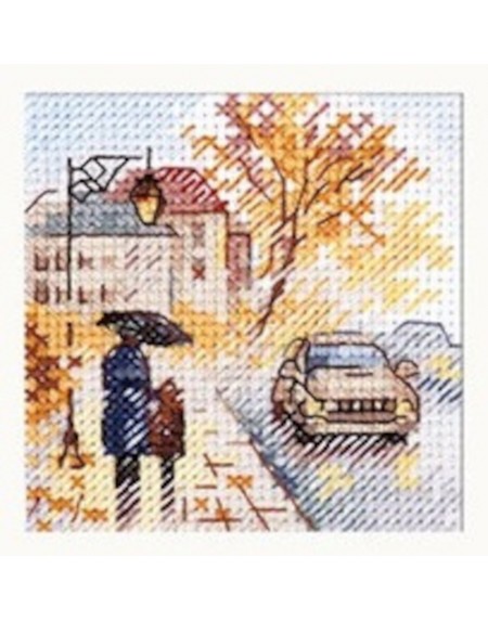 S0-218 Jesień w mieście. Mokry bulwar Zestaw do haftu krzyżykowego 7x7 cm