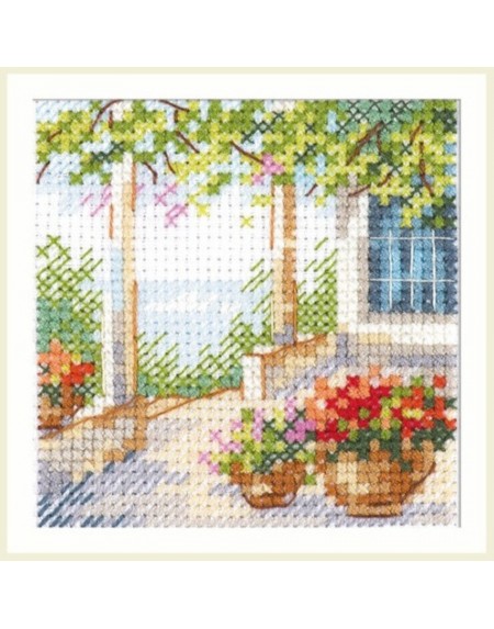 S0-201 Kwiatowe patio Zestaw do haftu krzyżykowego 7x7 cm