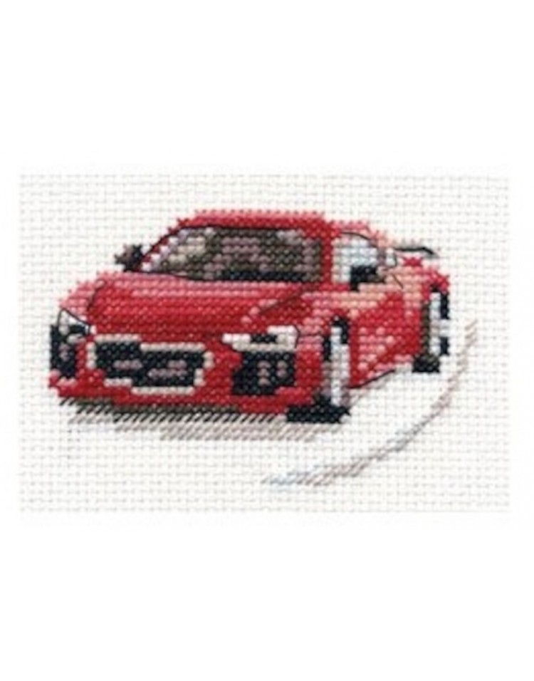 S0-157 Czerwony samochód sportowy Zestaw do haftu krzyżykowego 9x6 cm