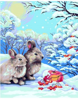 L018 Malowanie po numerach Króliki w zimowym lesie 40 x 50 cm