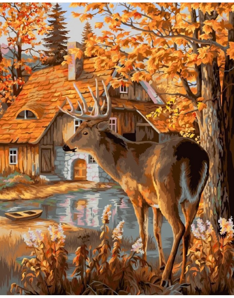 H116 Malowanie po numerach Chatka w lesie 40 x 50 cm