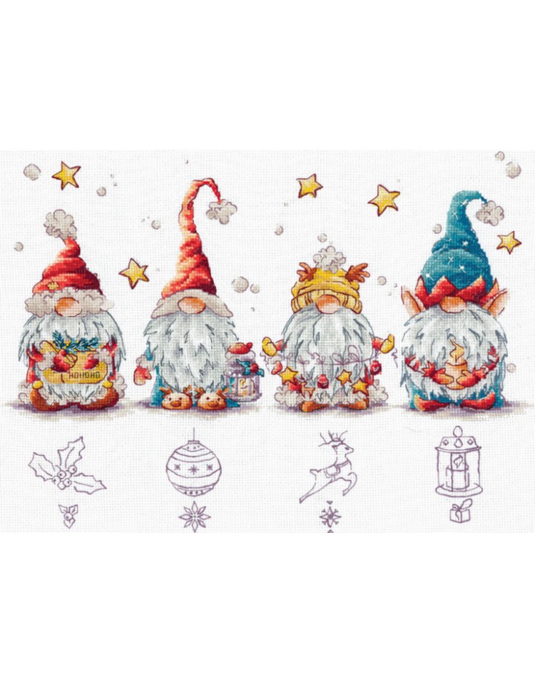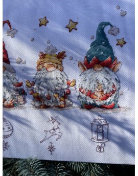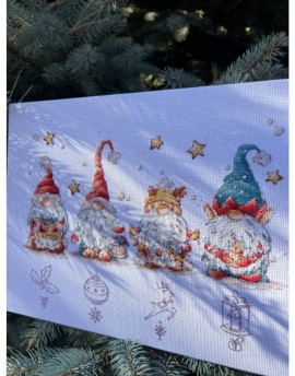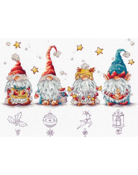 SANR-55 Świąteczne krasnale Zestaw do haftu krzyżykowego 36,5x21,5 cm
