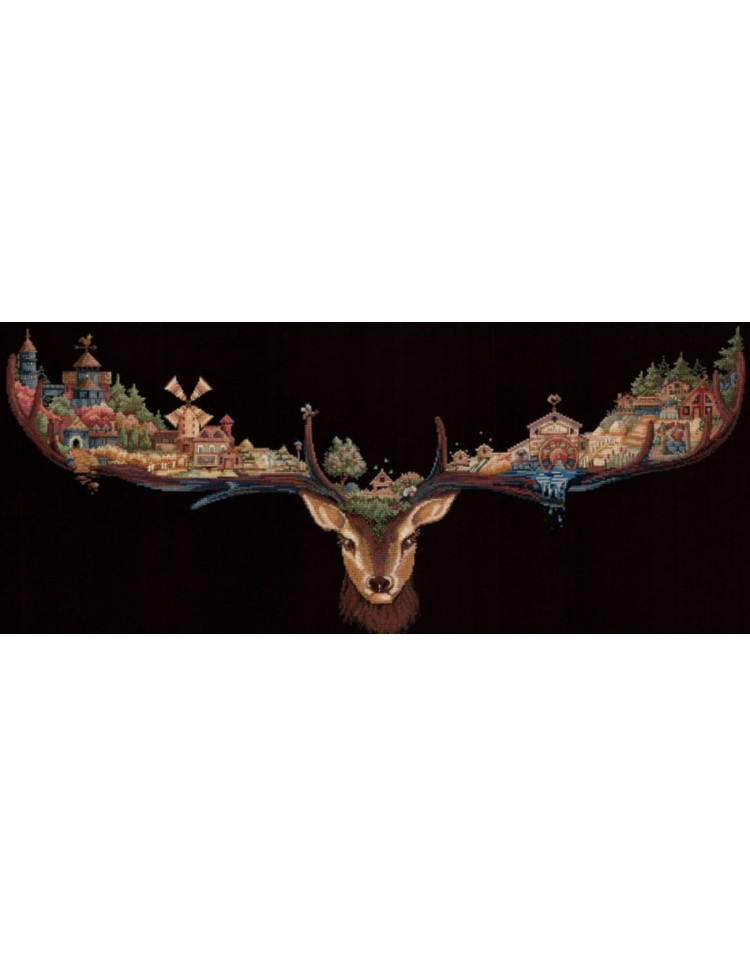 SANO-21 Kraj jeleni Zestaw do haftu krzyżykowego 74x30 cm