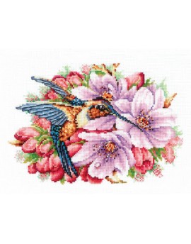 SANK-44 Koliber i kwiaty Zestaw do haftu krzyżykowego 21x14,5 cm