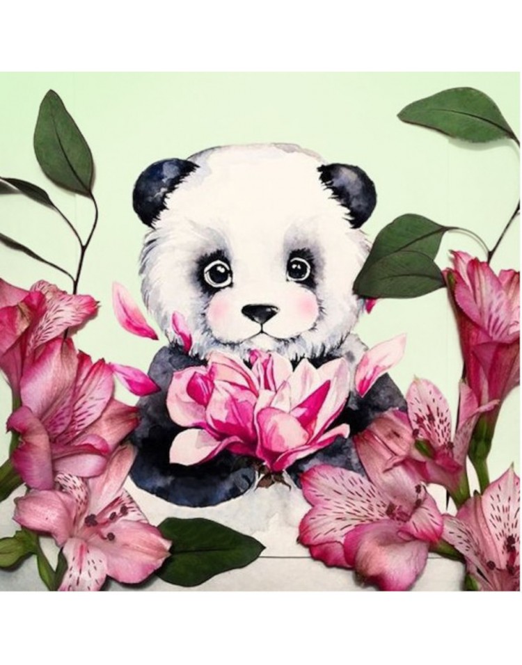 WD2341 Diamond Painting Haft diamentowy Panda i kwiaty 38 x 38 cm