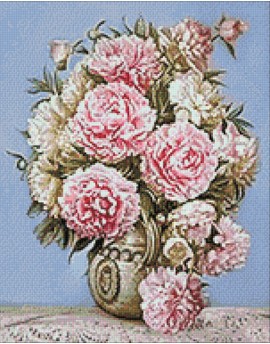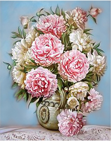 WD001 Diamond Painting Haft diamentowy Puszyste Piwonie 48 x 38 cm