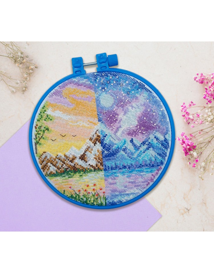 AAHM-061 Południe i północ Zestaw do haftu krzyżykowego z tamborkiem 17x17 cm