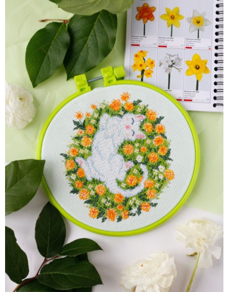 AAHM-038 Słoneczne czułości Zestaw do haftu krzyżykowego z tamborkiem 15x15 cm