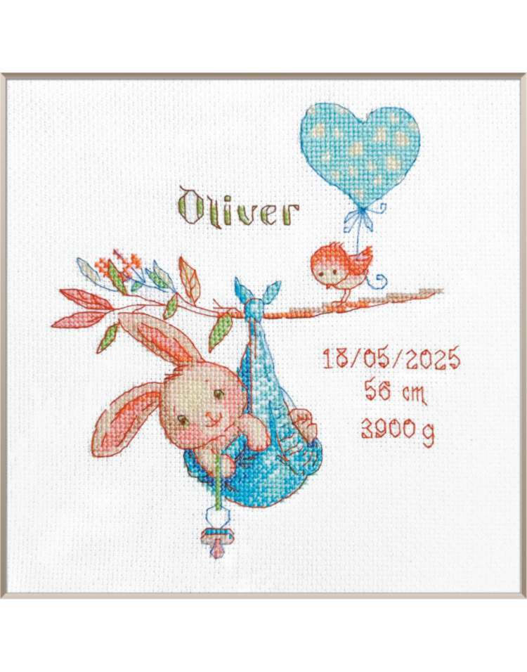 A1028 Metryczka. Narodziny chłopca Zestaw do haftu krzyżykowego 20x20 cm